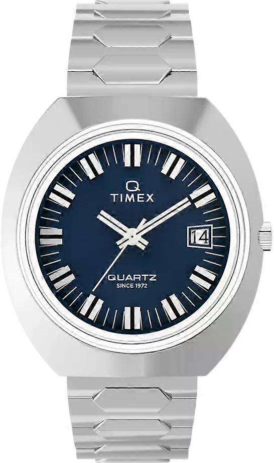 Timex TW2Y33100 Q Timex 1972 Time Machine - iconische reissue in retro tonvorm De Timex TW2Y33100 Q Timex 1972 Time Machine Reissue is een opvallend horloge met een uniek tonvormig ontwerp, geïnspireerd op een origineel Timex-model uit 1972. Dit retro reissue-model combineert het klassieke seventies design met een betrouwbaar quartz uurwerk en moderne draagbaarheid. De blauwe wijzerplaat en zilverkleurige kast maken dit horloge tot een echte eyecatcher. Leverbaar bij WatchXL. * Quartz uurwerk - nauwkeurige tijdweergave zonder onderhoud * Waterdicht tot 5 ATM - geschikt voor douchen of regen * Tonvormige roestvrijstalen kast - retro stijl met moderne klasse * Roestvrijstalen schakelband - comfortabel en duurzaam * Plexiglas - lichtgewicht en versterkt de vintage look Terug naar 1972 in stijl Met zijn 39 mm kastdiameter en opvallende tonvormige ontwerp is dit horloge een directe throwback naar de jaren ’70. De combinatie van de diepblauwe wijzerplaat met zilverkleurige