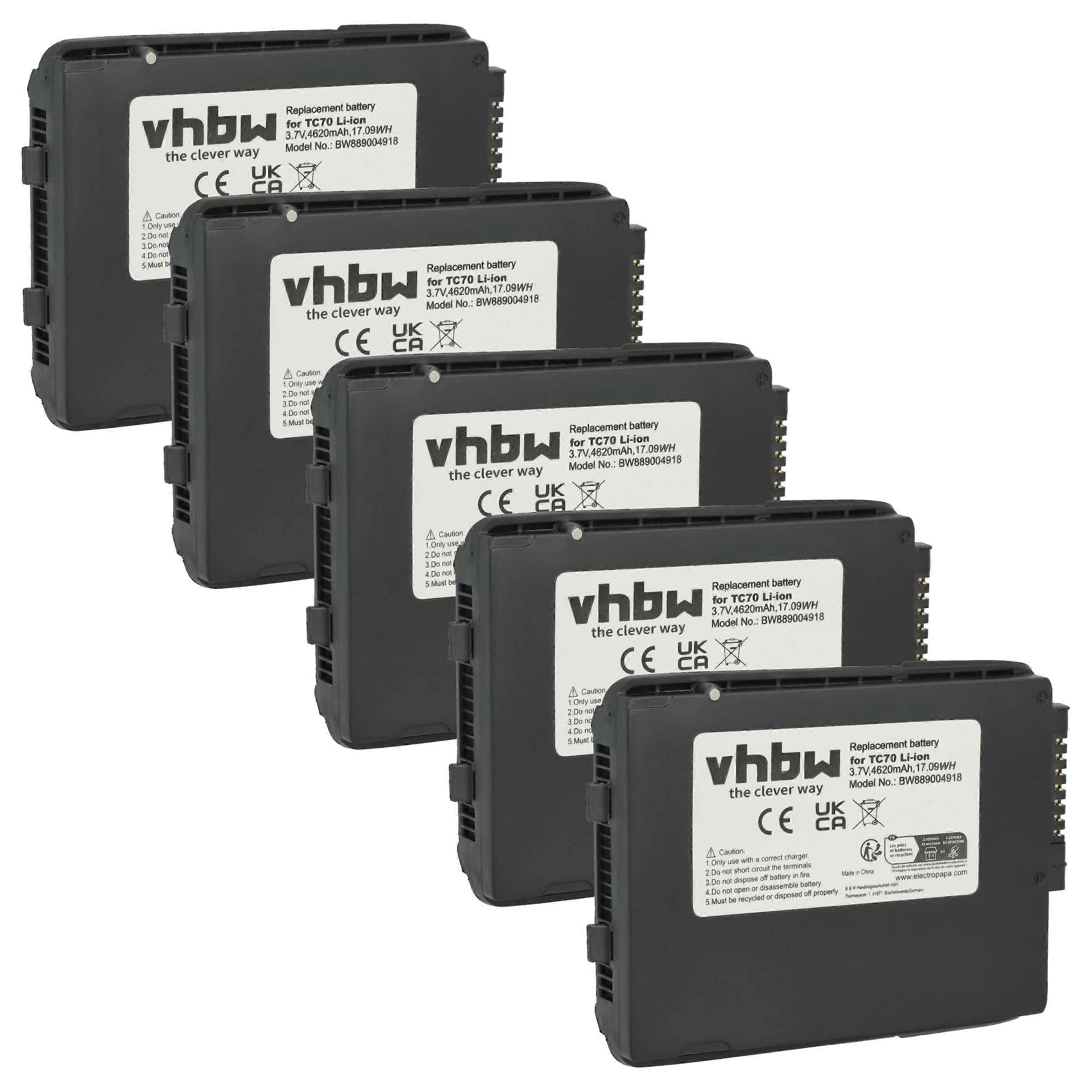 vhbw 5x Akku Ersatz für Zebra 82-171249-02, BT-000318, BTRY-TC7X-46MAH-01 für Barcodescanner POS (4620 mAh, 3,7 V, Li-Ion)