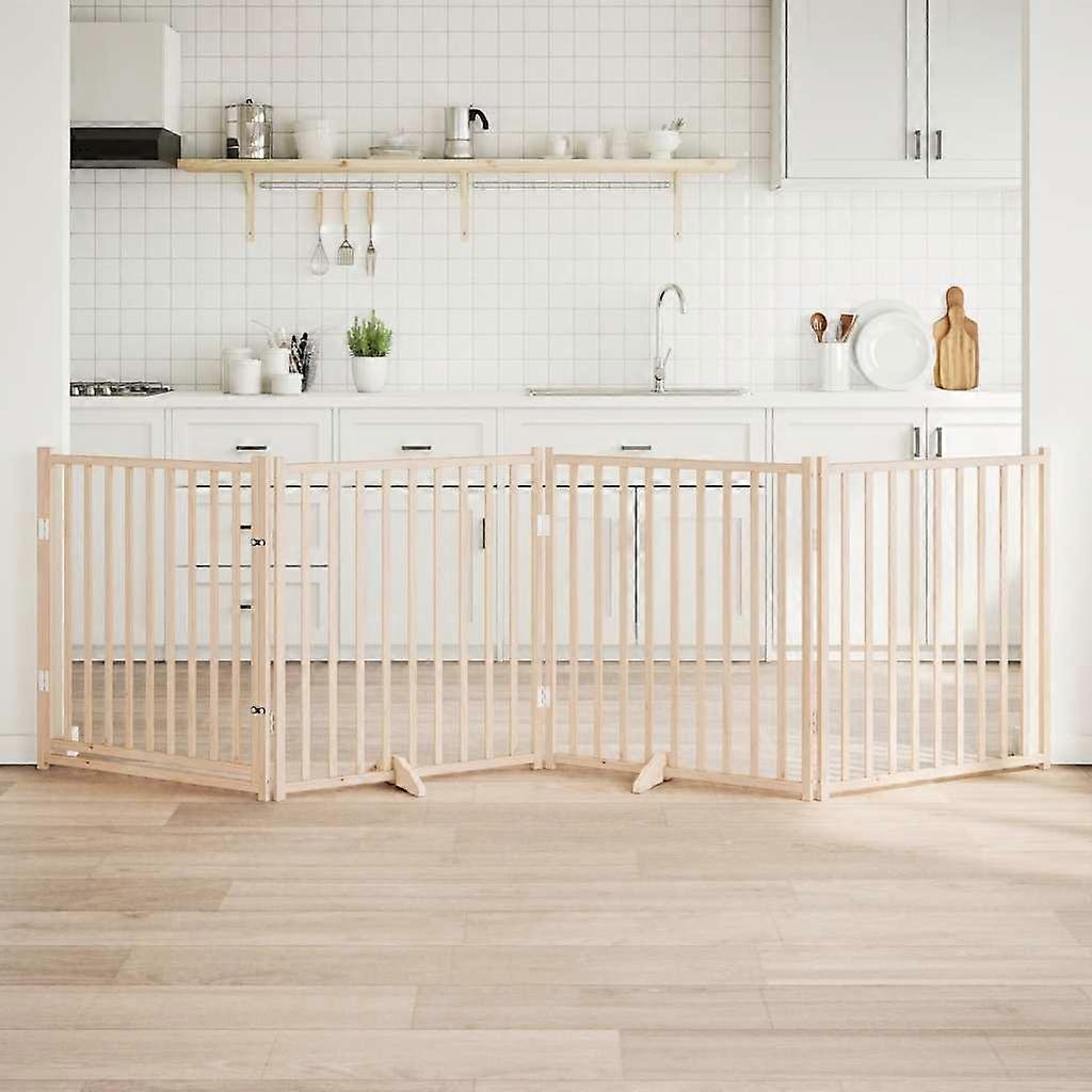 Hundegitter mit Tür Faltbar 4 Paneele 320 cm Massivholz Tanne