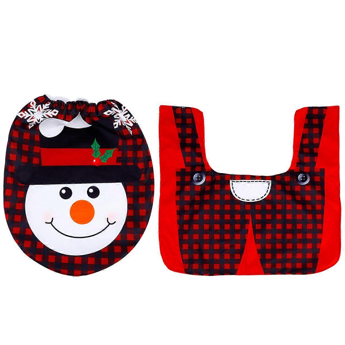 1 Set of Christmas Pattern Toilet Mat Toilet Seat Lid Cover for Bathroom