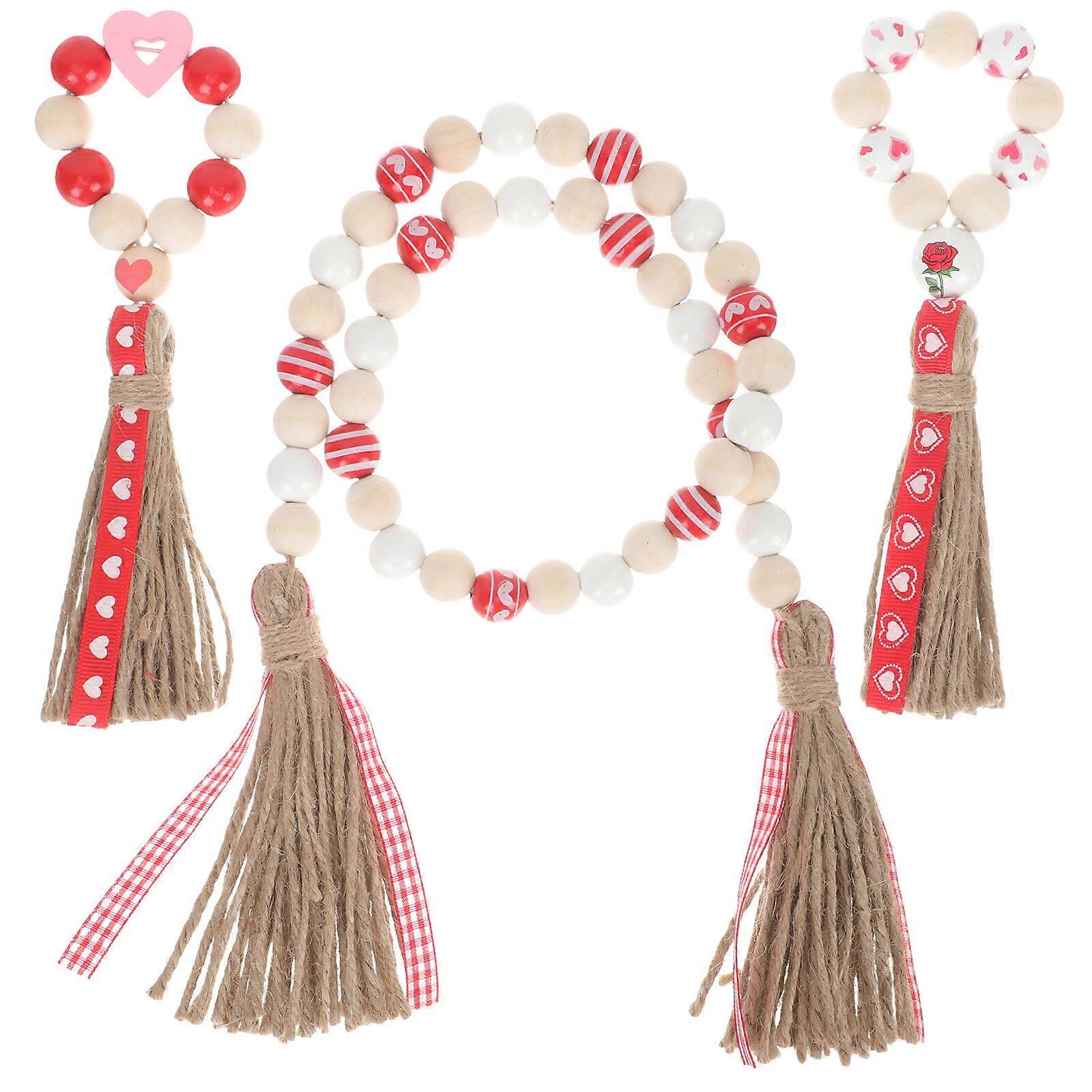 1 Set of Valentine's Day Tassel Wooden Beads Garland Wooden Beads String Ornament