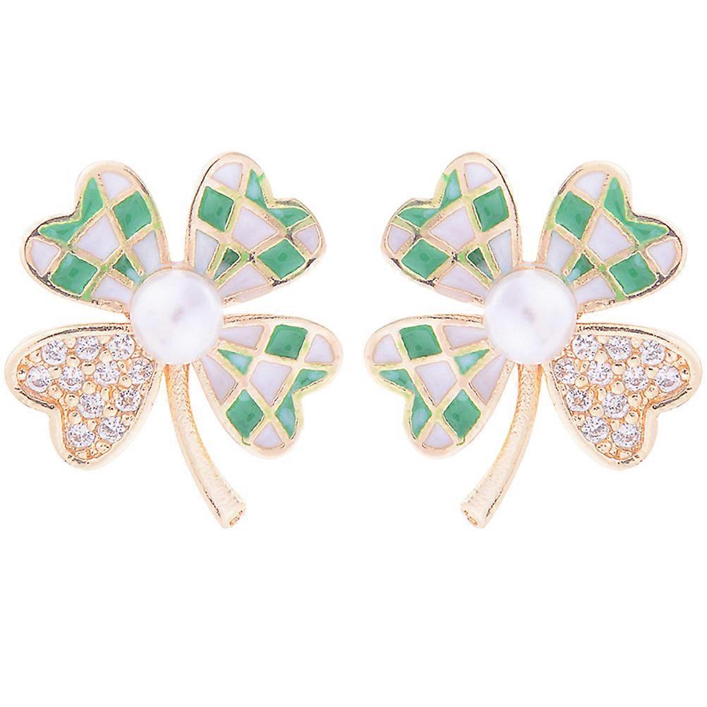 1 Pair of Party Earrings Rhinestone Ear Studs St. Patrick's Day Ear Decorations Shamrock Earrings