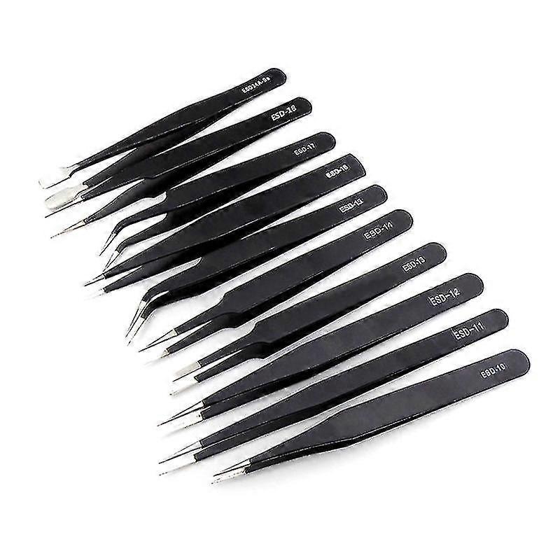 10 Pieces Anti-static Tweezers Esd Tweezers For Electronics Repair Soldering