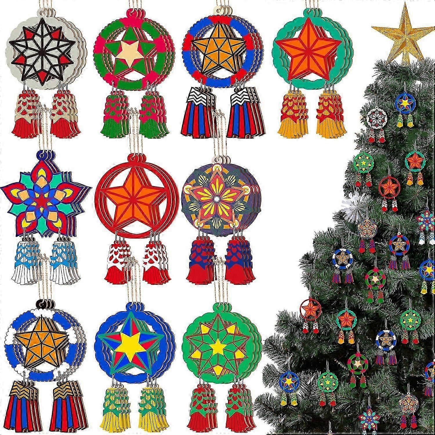 10 Pcs Philippine Christmas Tree Parol Ornament Christmas Mini Parol Wooden Hanging Ornaments Philippine Gift Traditional Capiz Star Decor for Home Wi