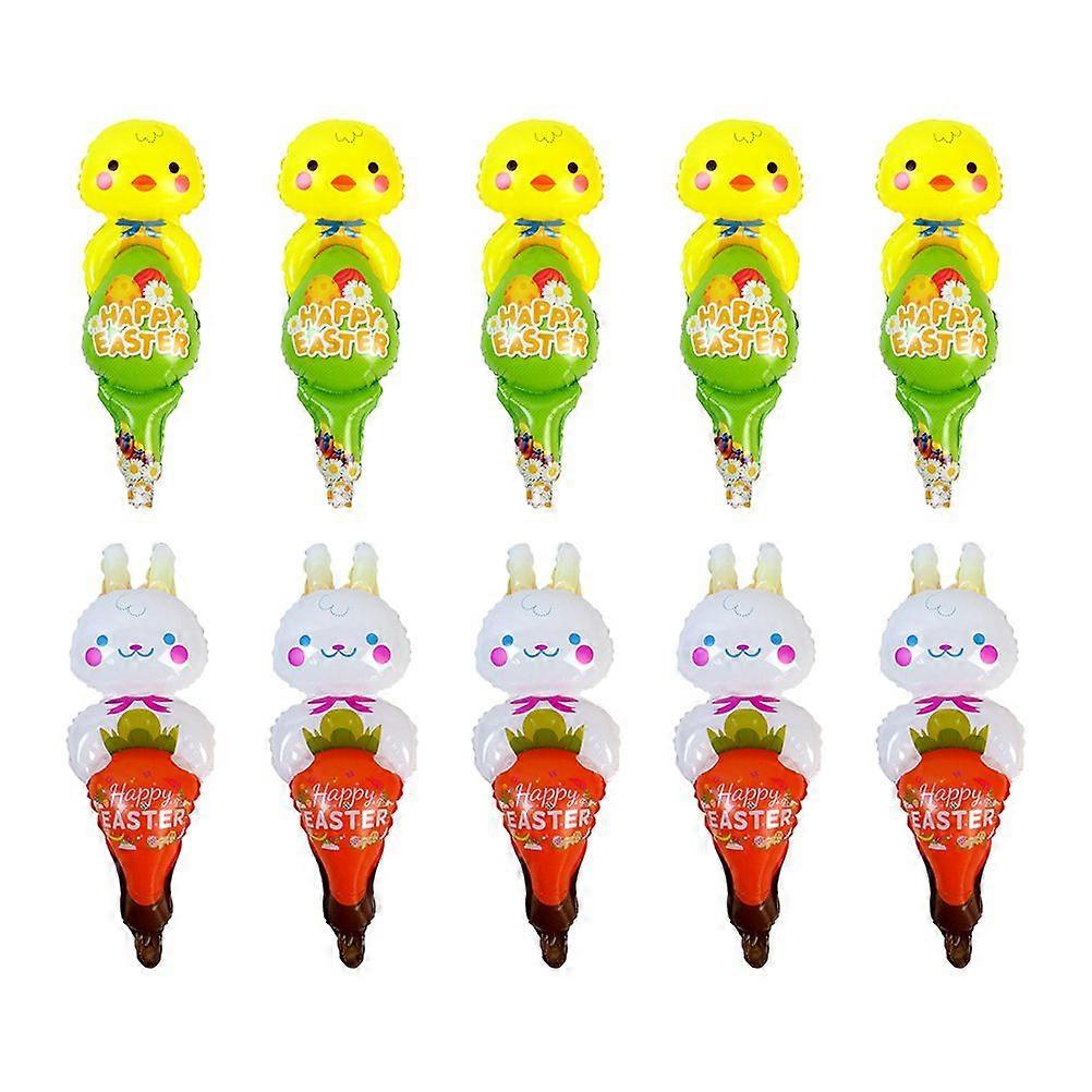 10 Pcs Easter Balloon Sticks Inflatable Bunny Chicken Balloons Inflatable Sticks