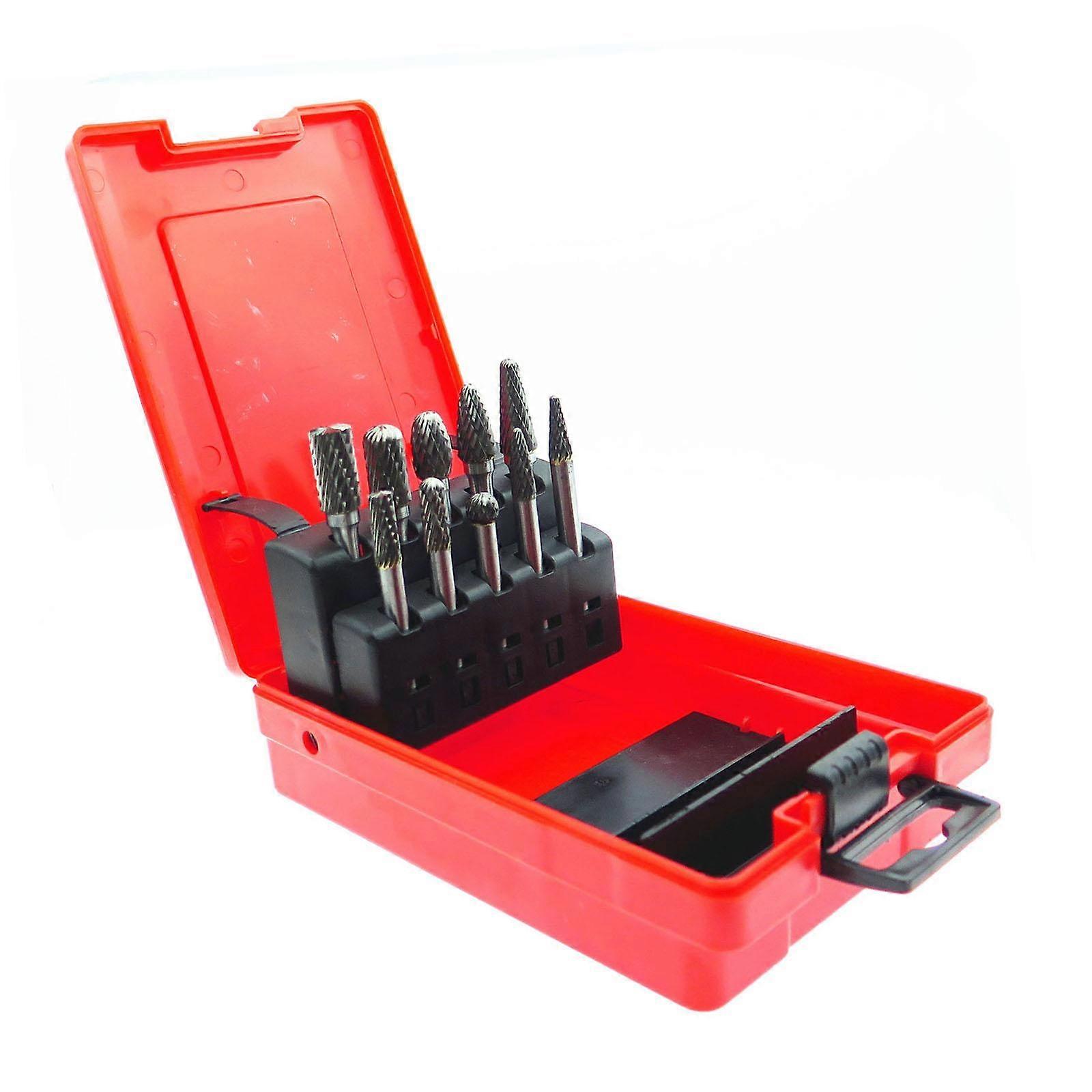 Description: Material: This set of 10 Carbide Burr made from strong tungsten carbide, known for its longevity and resistance to wear. Suitable for heavy duty grinding, cutting, and shaping tasks.Versatile Sizes: The set includes 5pcs of 6mm x 6mm burrs and 5pcs of 6mm x 10mm burrs. These different sizes provide you with the flexibility to tackle a variety of tasks with precision.Wide Compatibility: These tungsten carbide burrs are compatible with most rotary tools, making them a versatile addition to tool kit.Ideal for Various Materials: Whether you're working on metal, wood, plastic or other materials, these burrs can help you achieve smooth and accurate results every time.Compact Packaging: The Carbide Rotary Burrs comes in a compact red box measuring 3.94inchx5.51inchx1.57inch, making it easy to store and carry around. Specification: Box Size:10cmx14cmx4cm/3.94inchx5.51inchx1.57inch Package Includes: 10Carbide Burr Set Note: Please allow slightly errors 1-2cm differences due to manual measurement.