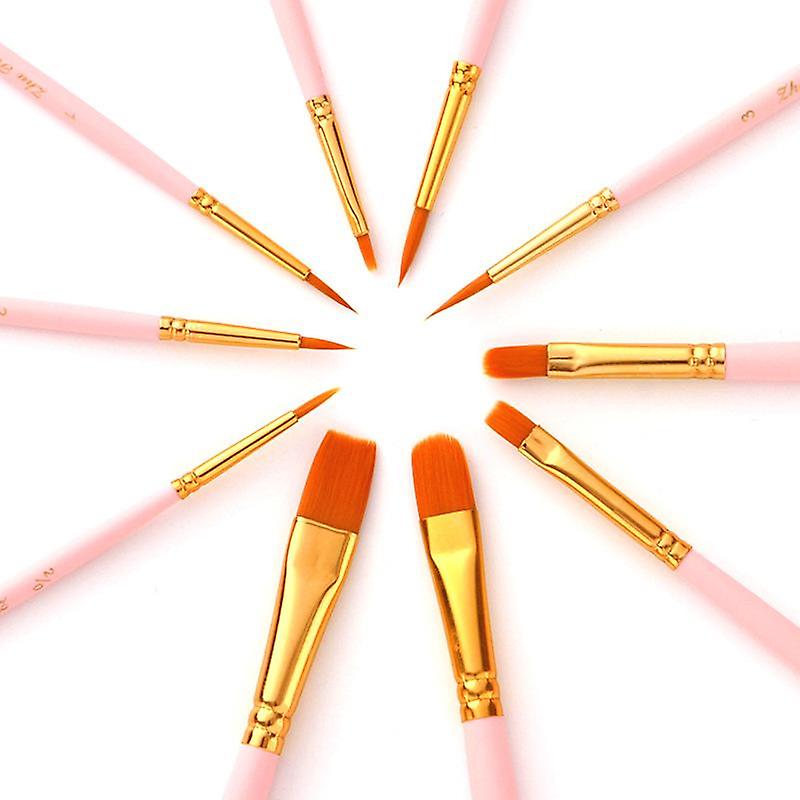10 Pcs Mint Green Nylon Hair Brush Wooden Watercolor Brush Art Supplies