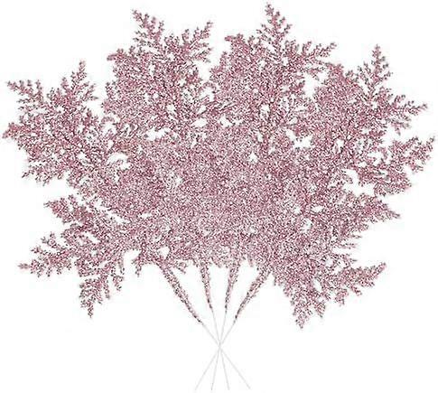 10 Pcs Artificial Christmas Leaves Picks, Pink Glitter Leaves for Xmas Tree Wreath Festival Decoration