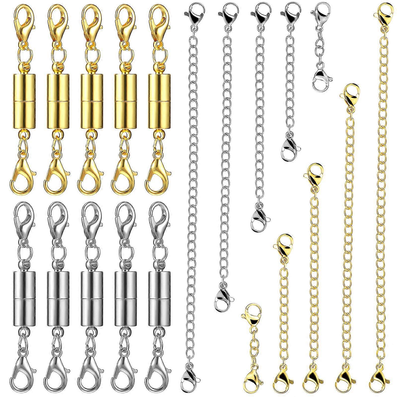 10 Pcs Necklace Extenders Bracelet Chains Extenders with 10 Pairs Magnetic Lobster Clasps Connectors for DIY Jewelry Making