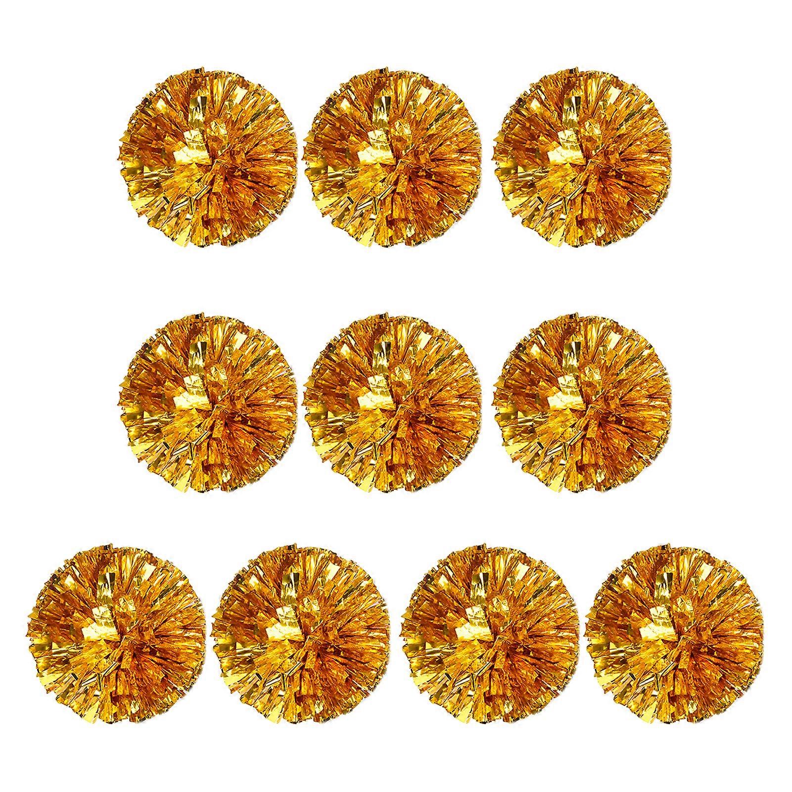 10Pcs Cheerleader Pom Poms Metallic Cheerleader Pompoms with Finger Ring Cheering Props for Squad Team Sports Game Dance Dress Party
