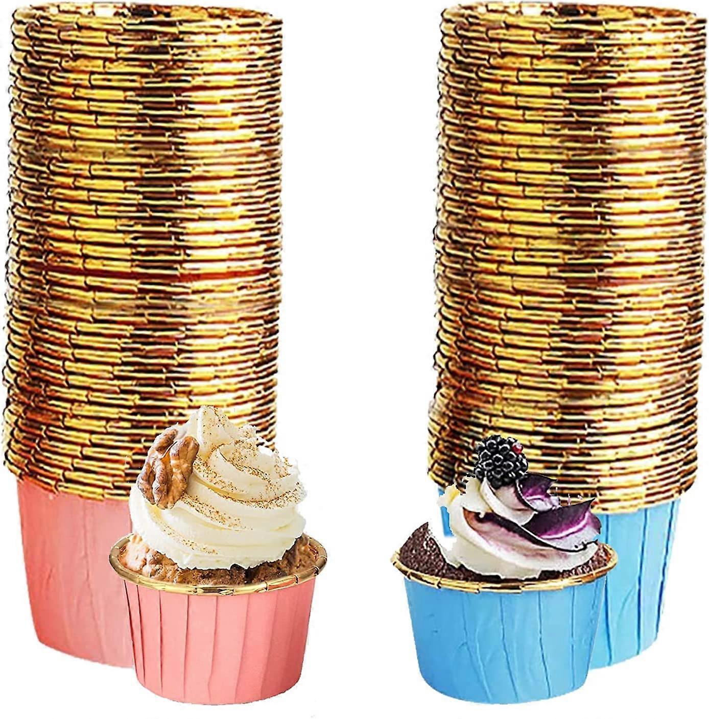 100-Piece Cupcake Baking Box Cake Baking Cups Mini Cups (Blue Gold, Pink Gold)