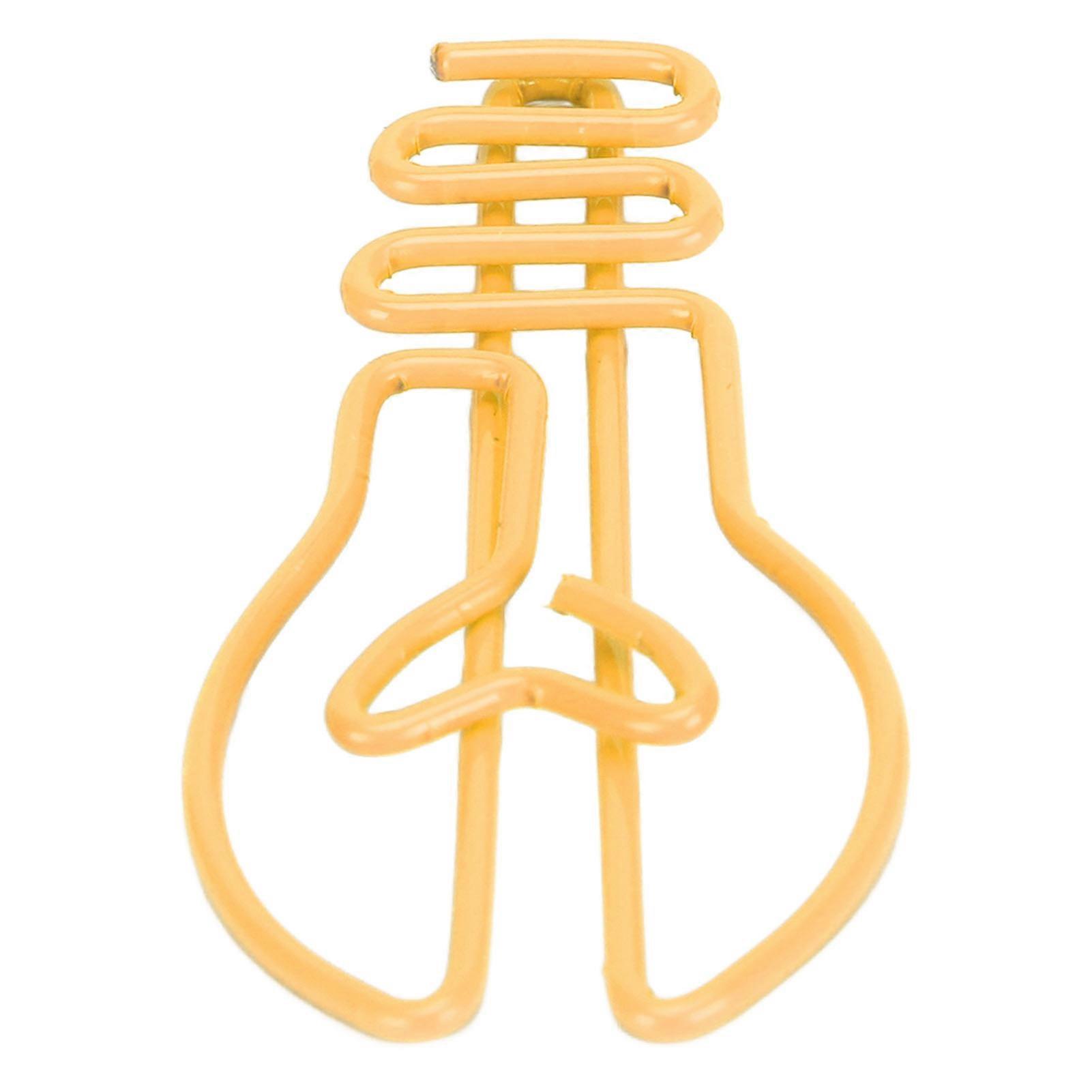 100 Pcs Light Bulb Shape Paper Clips, Non-Slip, Rustproof, Metal Plating, for Office, Yellow