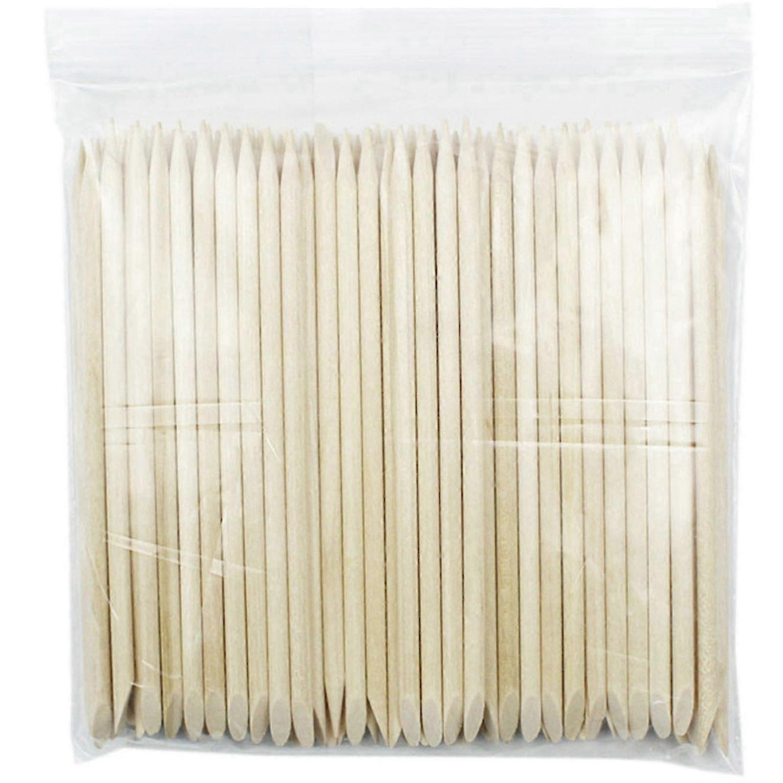 100pcs Wood Cuticle Pusher Sticks 2 Ways Cuticle Pusher Orange Sticks