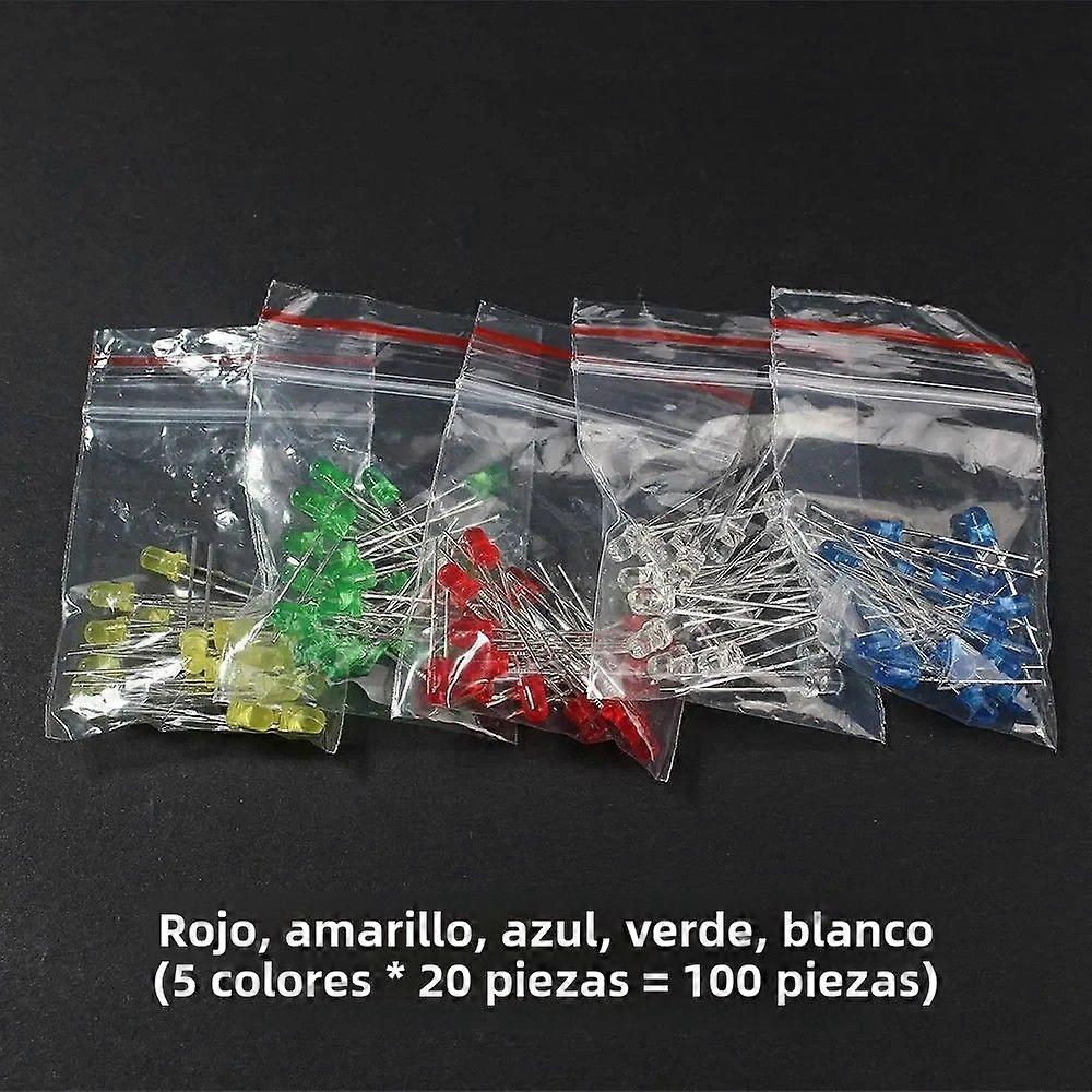 100PCS LED Diode Kit 3mm Ultra Bright White Red Green Blue Transparent Lens Diffused F3 Emitting Assortment