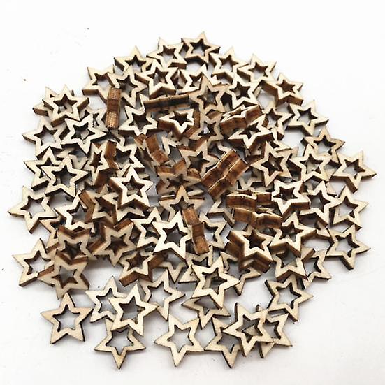 100Pcs Star Wood Chips Creative Hollow Design Star Ornaments DIY Wood Crafts for Holiday Party Decoration
