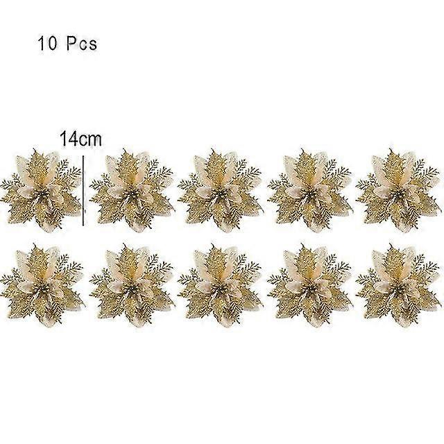 10/5/1pcs Christmas Flowers Red Glitter Powder Flower Heads For Noel Home Tree Ornaments Navidad Party Table Setting Supplies