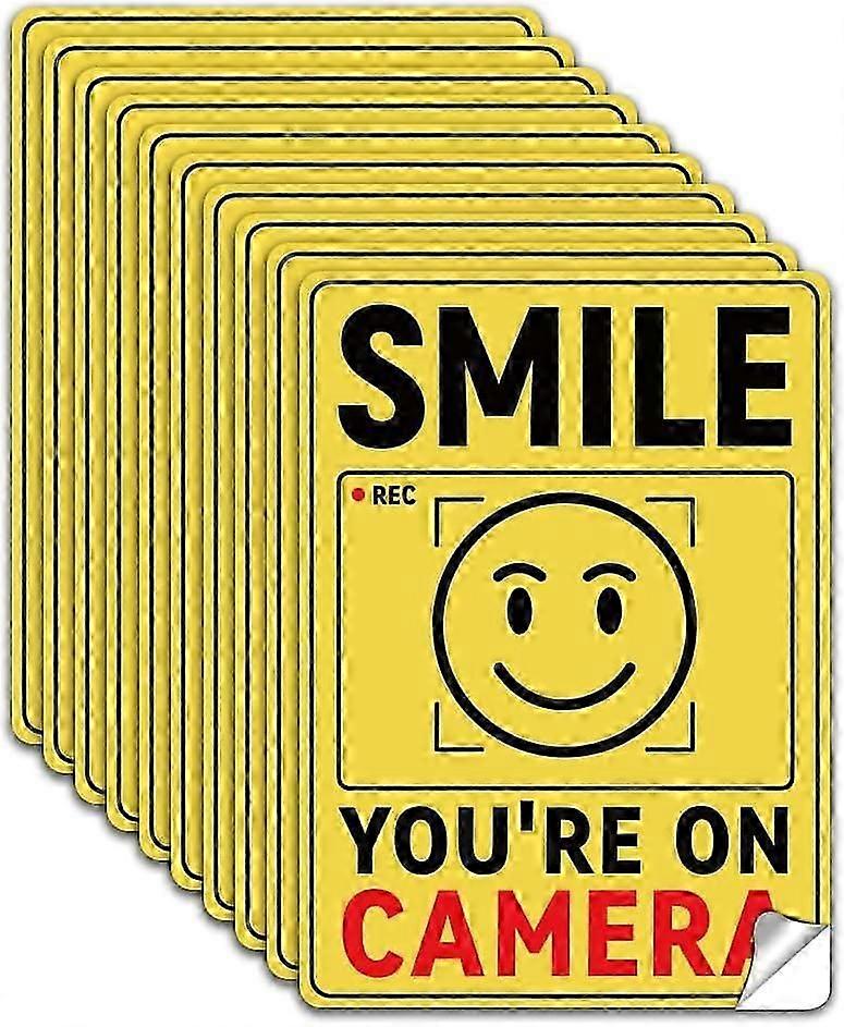 10pcs Smile You're On Camera Sign Sticker Pvc Waterproof Polite Video Surveillance Sign Stickers Decal For Yard