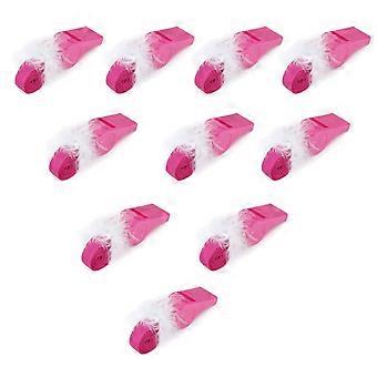 10pcs Party Games Plastic Fluffy Whistles with Strap (Rosy)