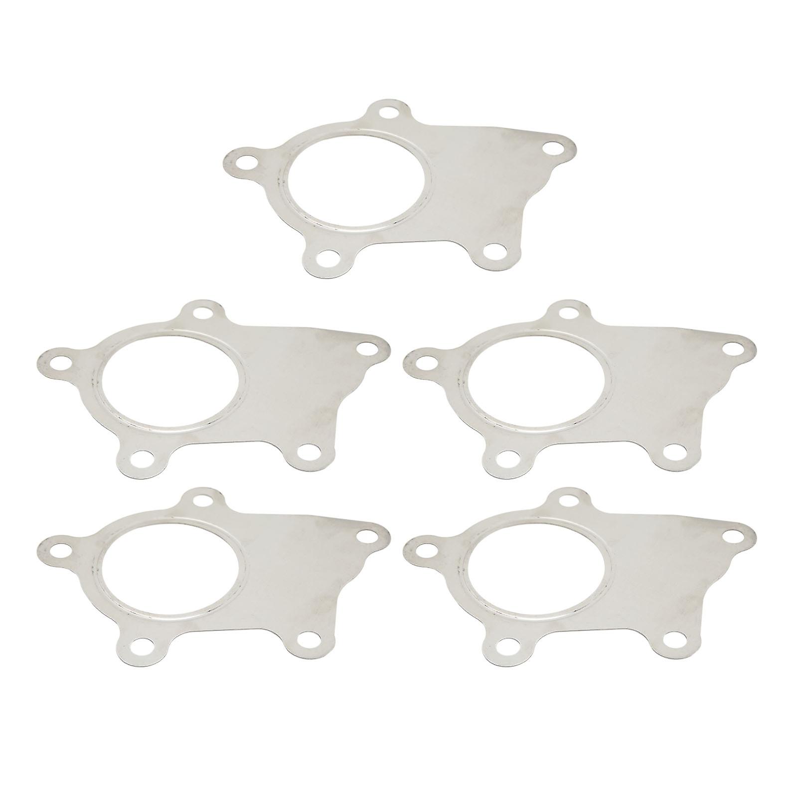 10PCS Turbo Downpipe Flange Metal Gasket Stainless Steel Bolt Hybrid Flange Gasket Replacement For T3/T4 T3 T04E Item Type: Turbine Downpipe Flange GasketMaterial: Stainless SteelBolt Hole: 5 Application: Can be used to replace damaged or worn gaskets, has good sealing performance and connectivity, is ideal for upgrading/replacing pipes or turbochargers, effectively improve car power.Fitment: Replacement for T3/T4 T3 T04E