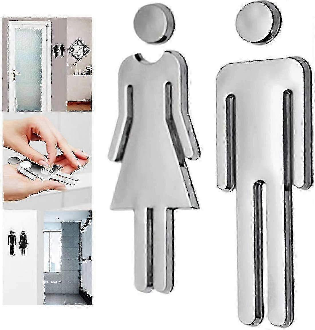 12cm Toilet Sign, Toilet House Number, Stainless Steel Sign2pcs Edition Ab SZRH A-VH