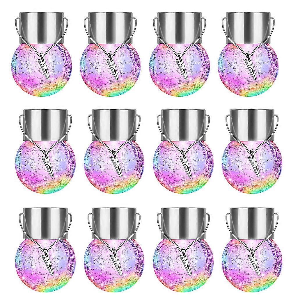 12 Pcs Outdoor Hanging Solar Lights Cracked Glass Solar Lights Waterproof LED