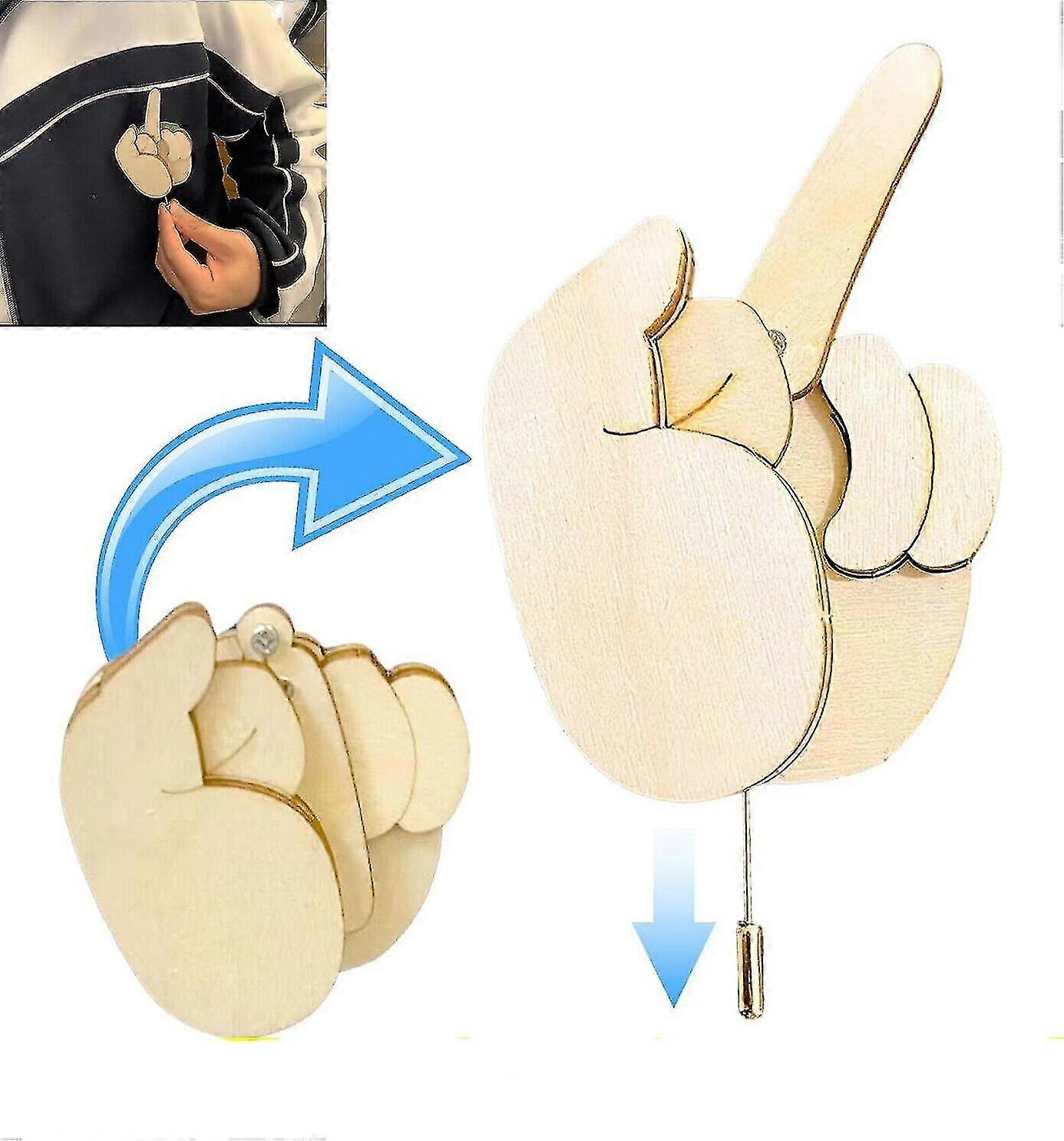 1/2/3pcs Funny Wooden Finger Brooch Middle Finger Pin DIY Ki, Flippable Middle Finger Pin