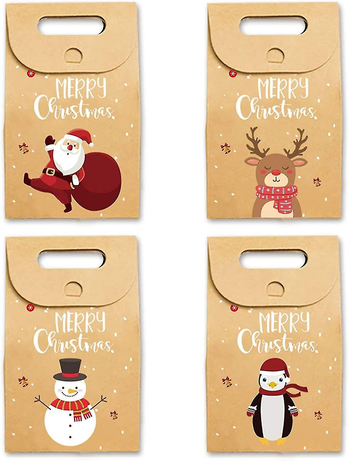 12pcs Christmas Kraft Gift Boxes, Christmas Party Treat Goody Candy Bag