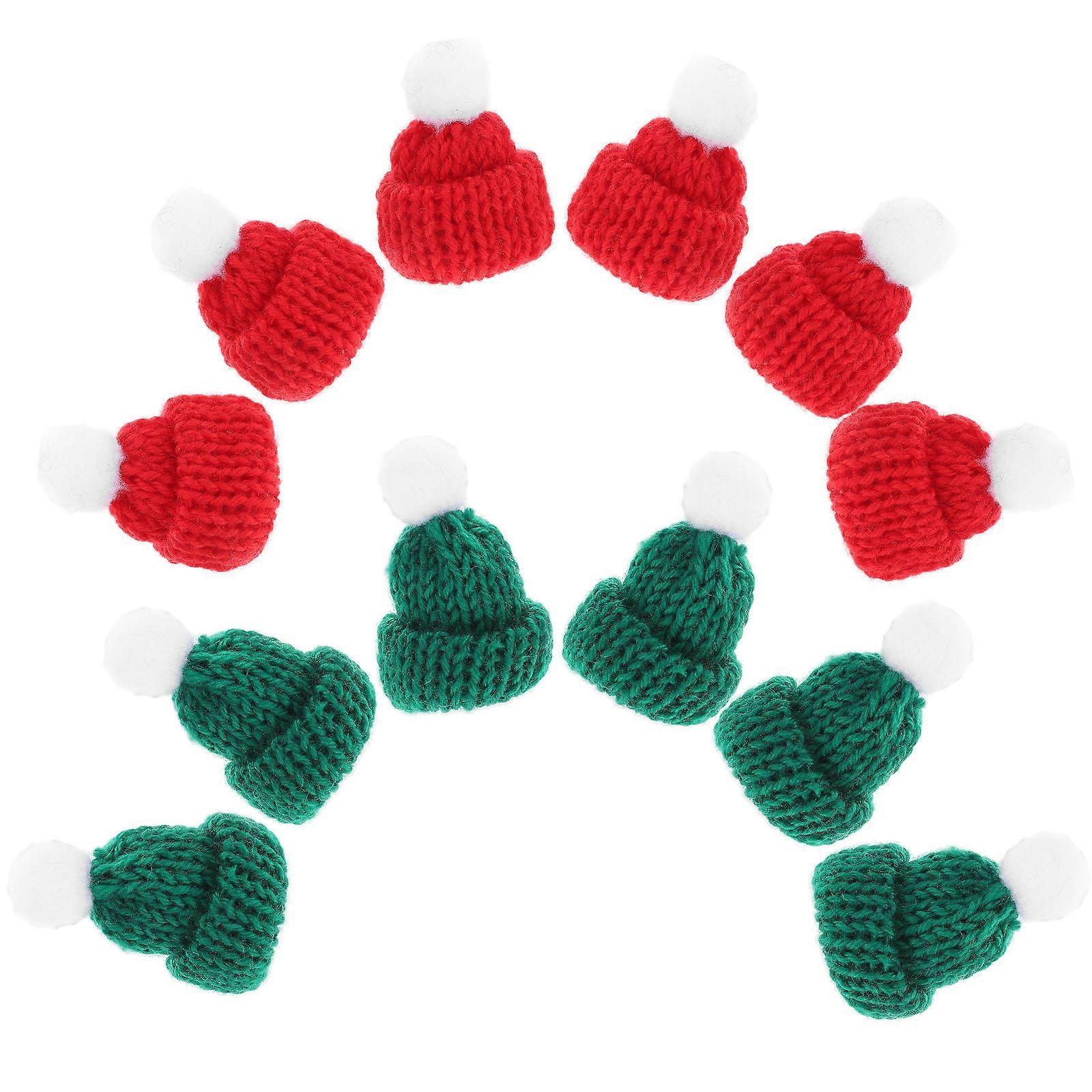 12pcs Mini Christmas Bottle Hats Wear Resistant Adorable Knitted Design Red Green For Party Family Gathering Decoration