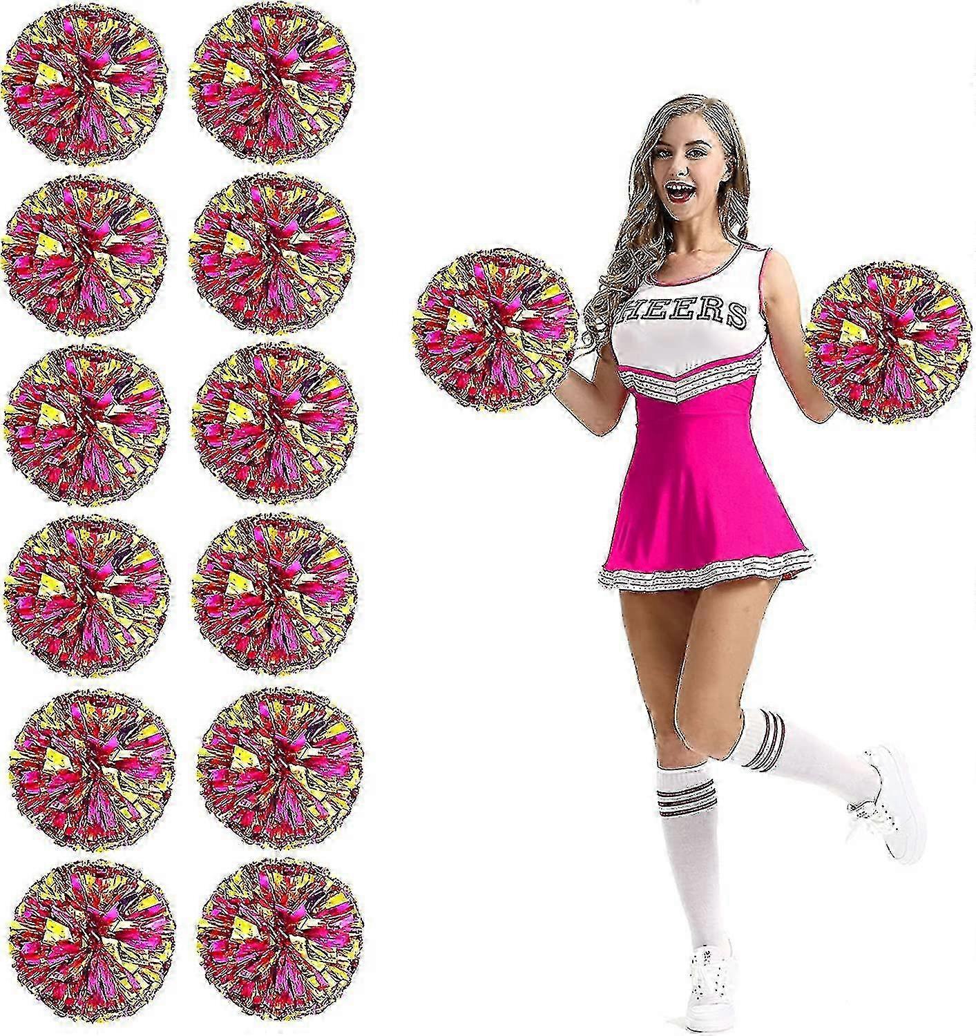 12pcs Cheerleading Pom Poms With Finger Holes Metallic Foil Cheer Pom Poms G