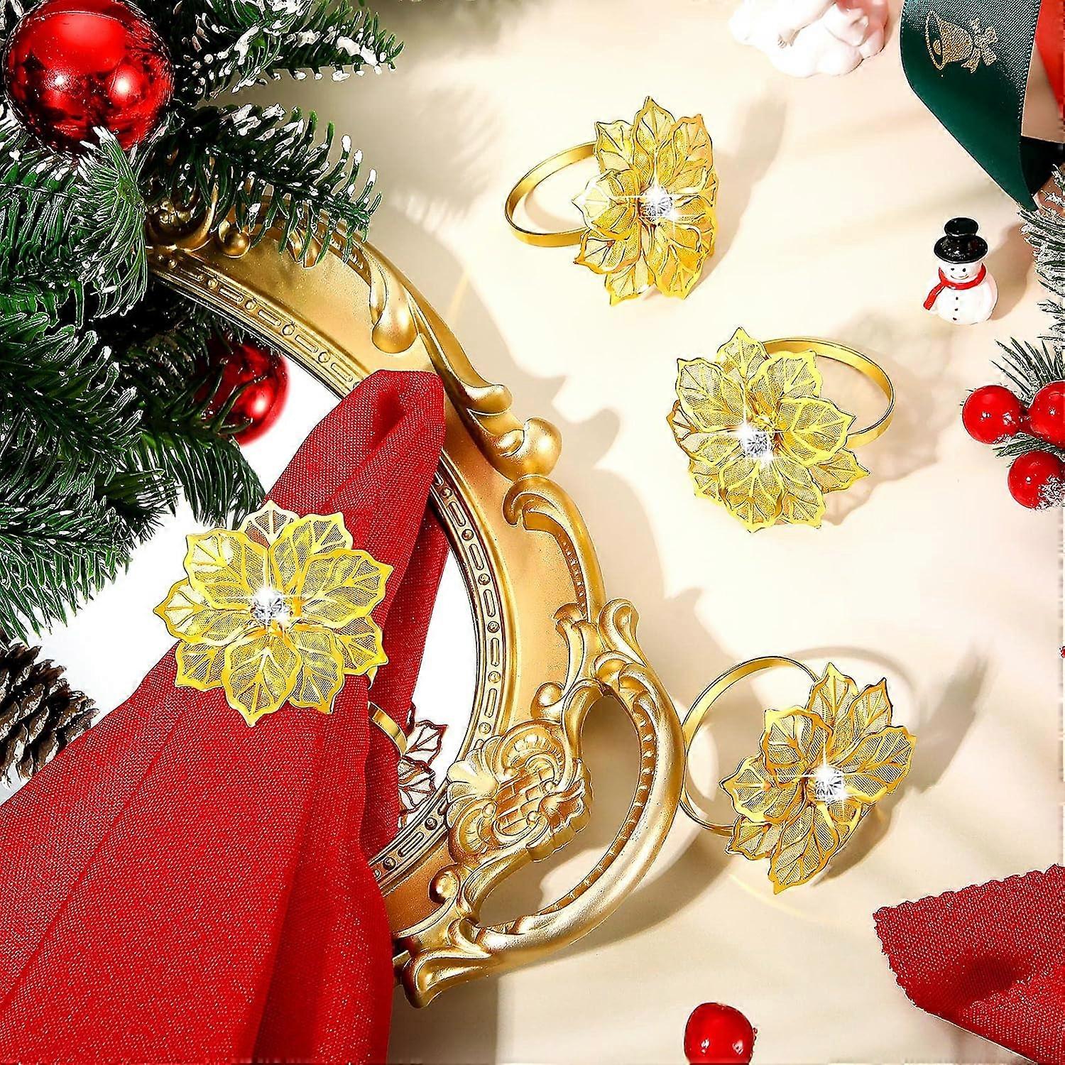 16 PCS Christmas Napkins and Ring Set 8 PCS Red Washable Christmas Napkins Cloth and 8 PCS Christmas Napkin Rings Holder for Christmas Holiday Dinner Party Table Decoration (Poinsettia)