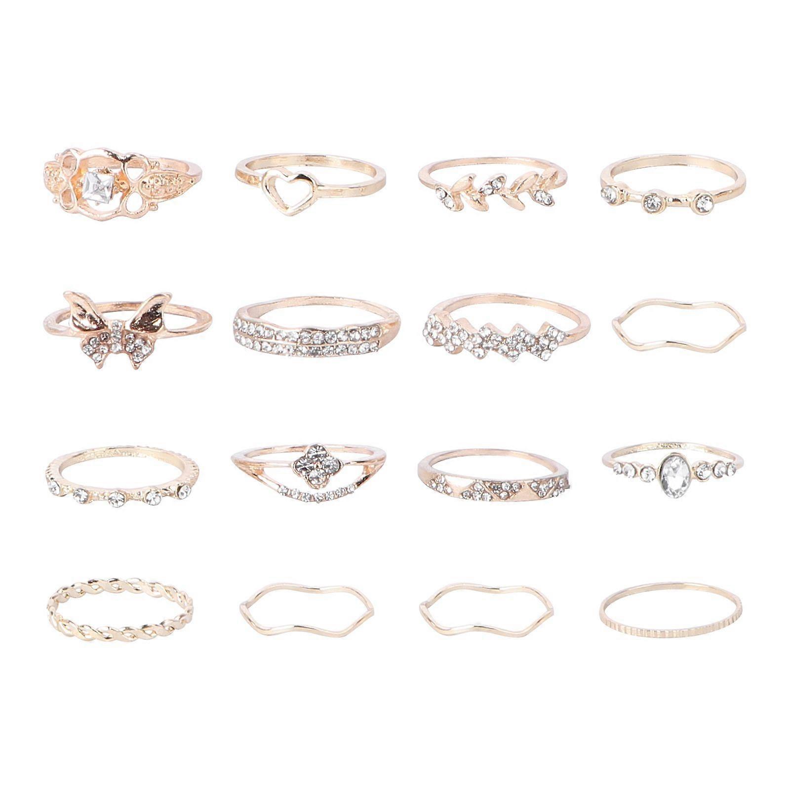 16pcs Knuckle Rings Alloy Simple Vintage Finger Rings Women Hand Decoration