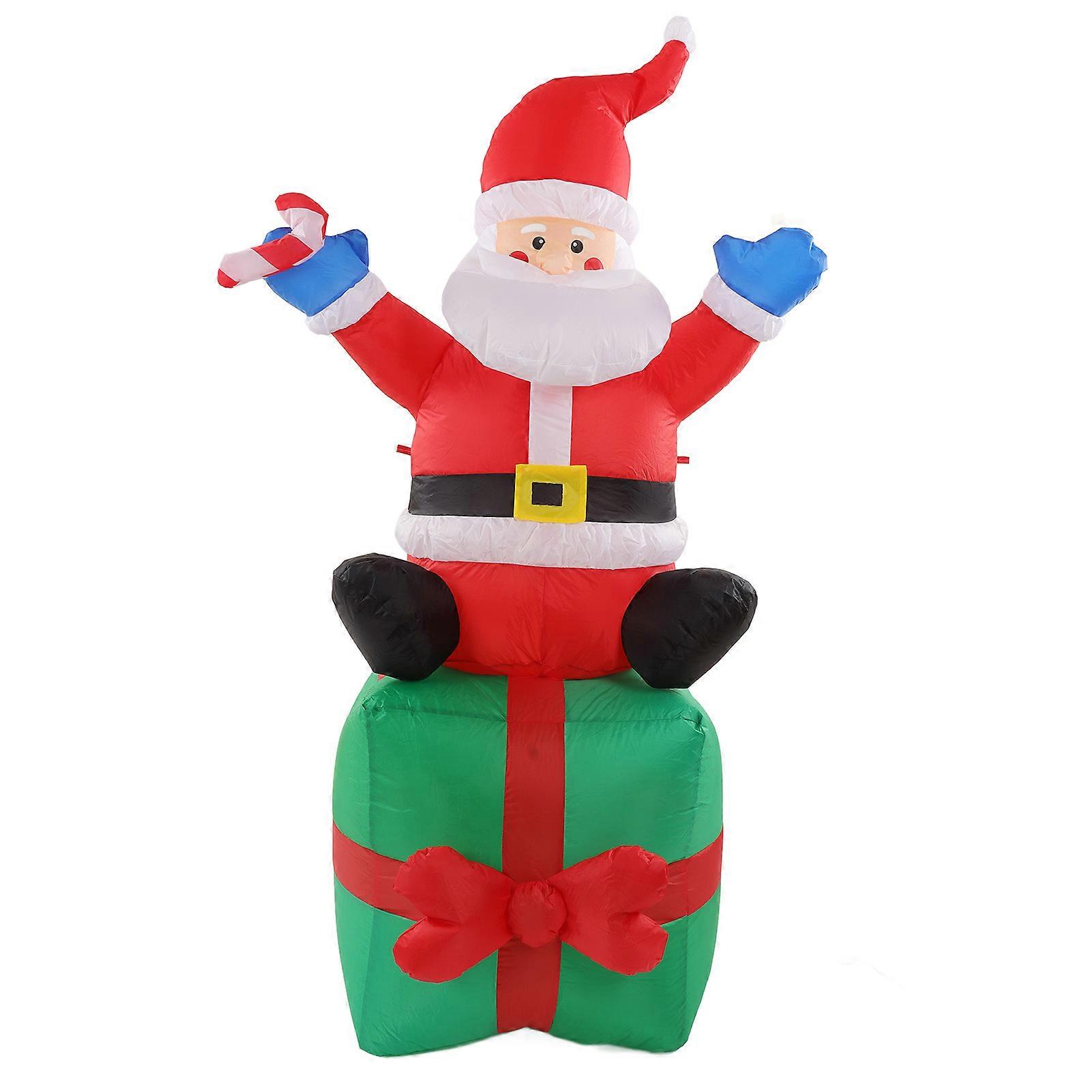 180cm/6ft Christmas Inflatable Santa LED Lighted Outdoor Decoration Santa with Stick Sitting On Gift Box 100‑240V EU Plug