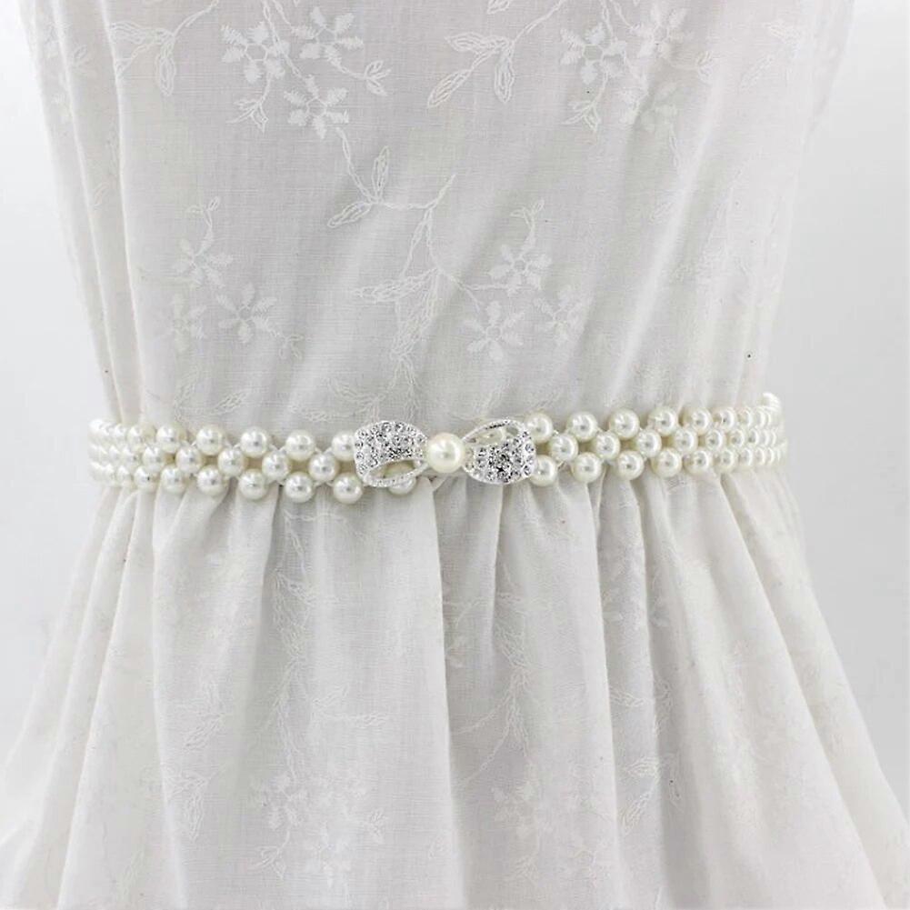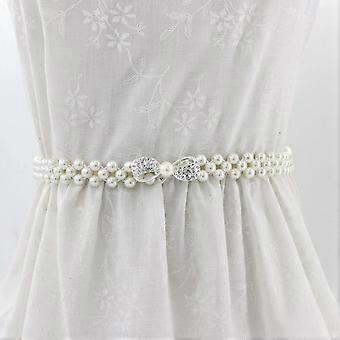 1PC Elegant Women Pearl Belt Waist Belt Elastic Buckle Pearl Chain Belt Female Girls Dress Crystal Strap