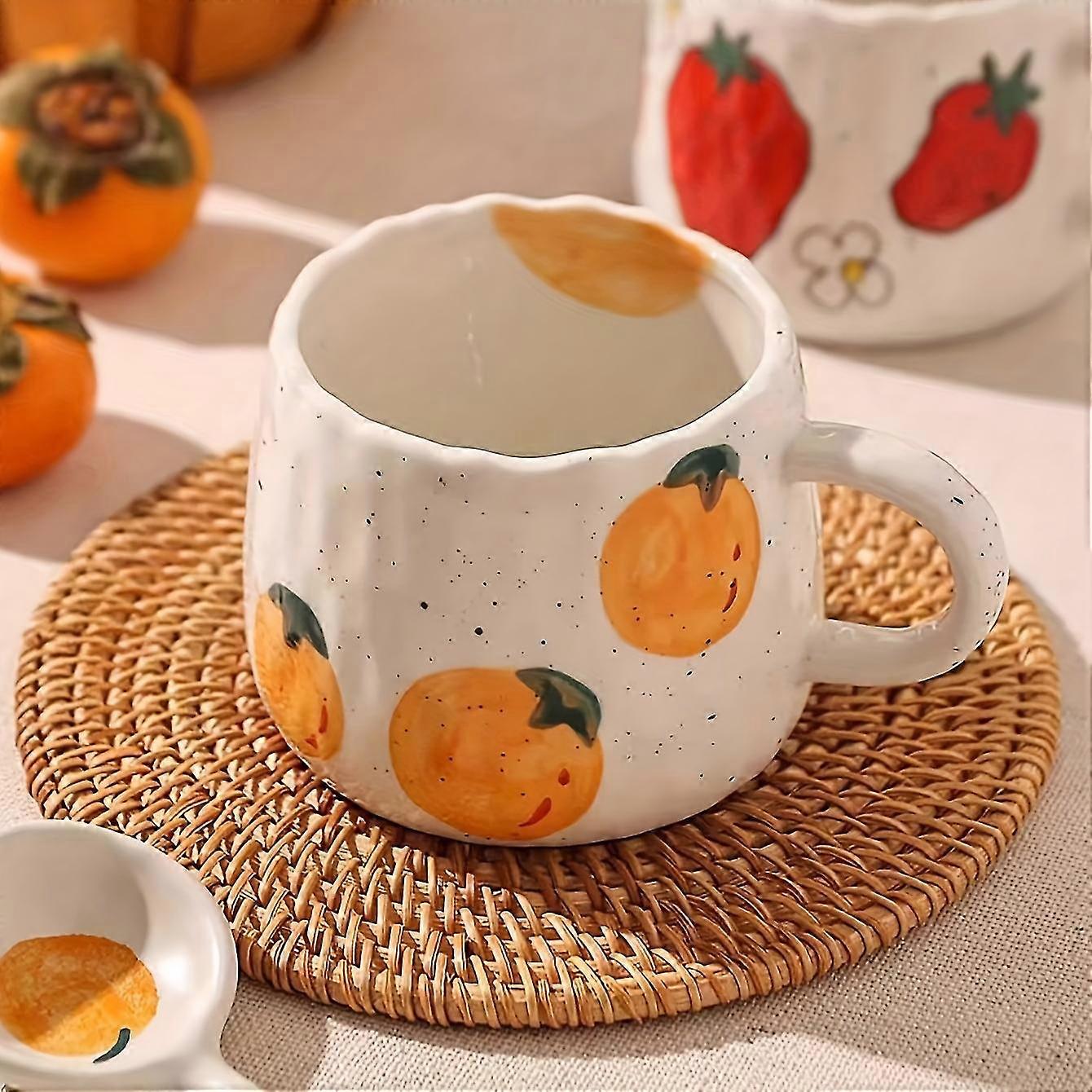 1pc, Fruit Pattern Coffee Mug, Ceramic Coffee Cup, Christmas Gifts, Family, Colleagues, Teachers, Wife, Husband, Sisters, Brothers, Funny Gifts, Uniqu