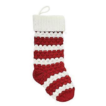 1Pc Christmas Stocking Knitted Red Green White Striped Large Capacity Reusable Xmas Tree Hanging Gif