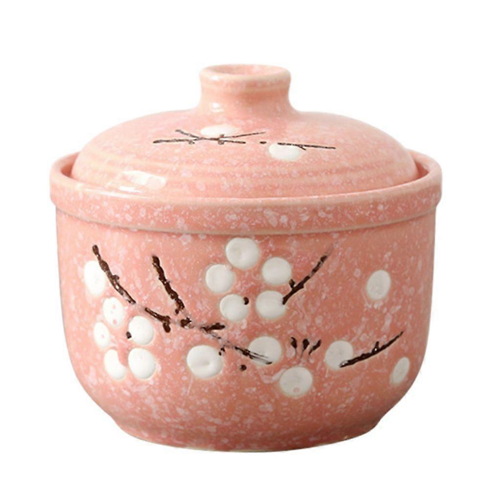 1Pc Ceramic Stew Bowl Steamed Egg Bowl Edible Bird's Nest Bowl with Lid (Pink)