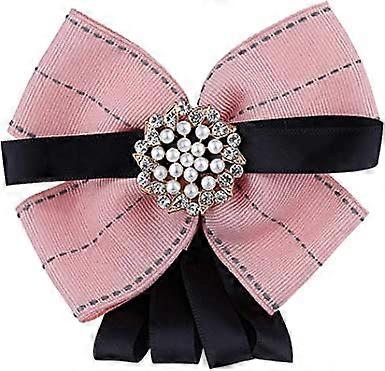1pcs pinkPearl Bow Brooch Pre Tied Neck Tie Brooch Pin Clip Ribbon Plaid Bow Tie for Women Wedding Party