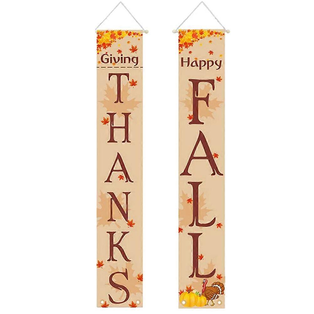 1Pair of Thanksgiving Day Couplets Decorative Door Ornament THANKS FALL Letters Door Hanging Banner