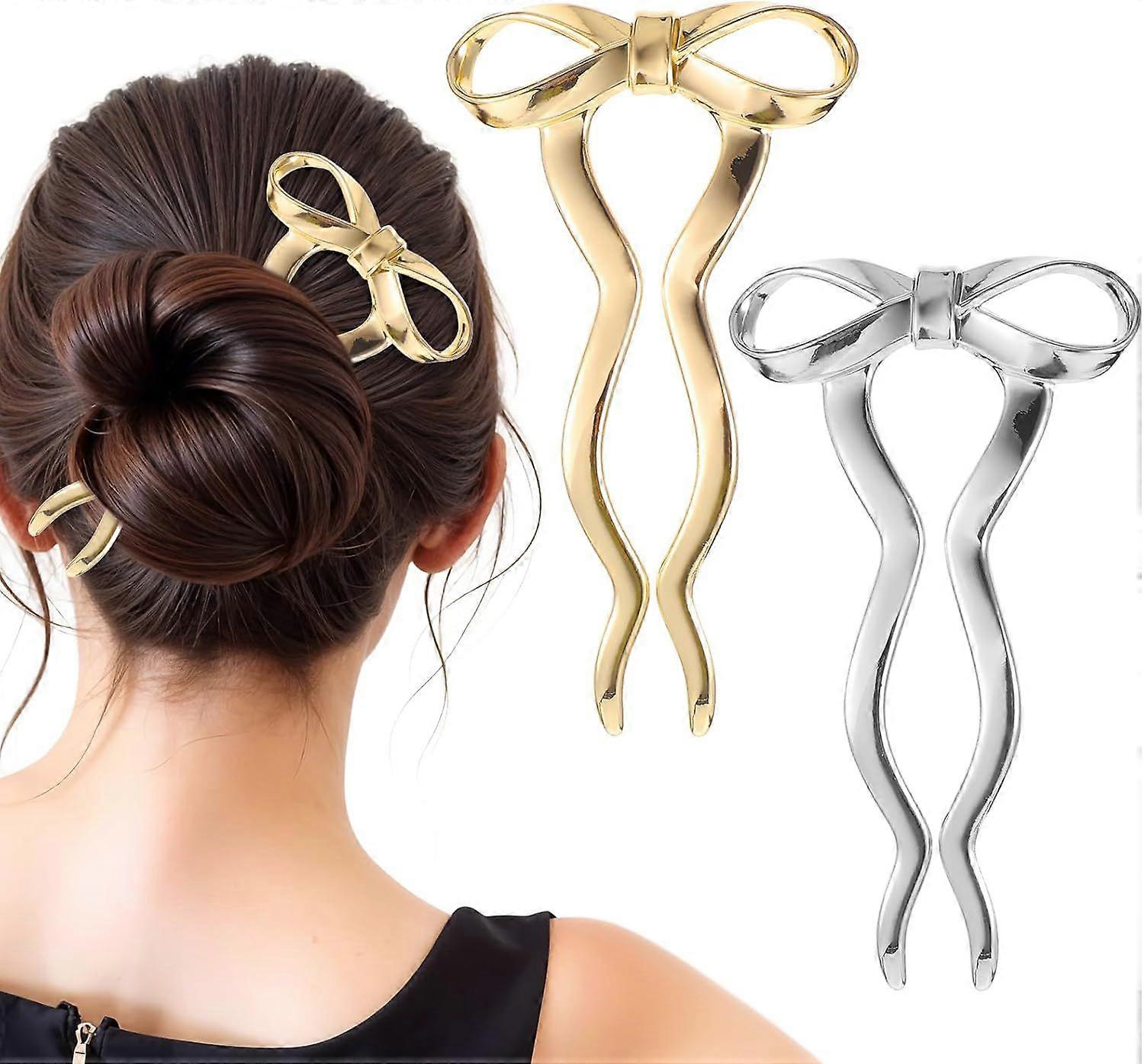 2 Pack French U-Shaped Hair Pins for Long Thick Hair - Large 2 Long Prong Bow - Twist Hair Pins for Women