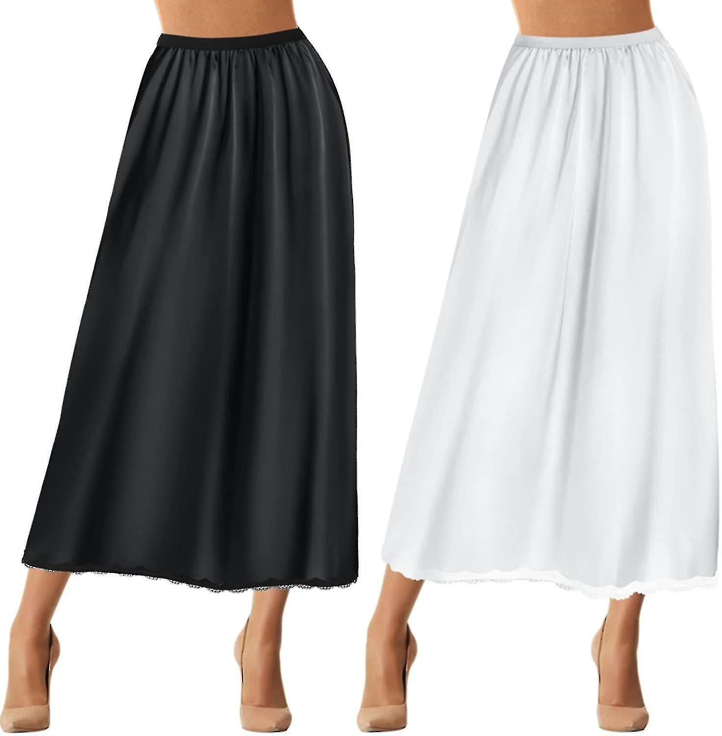 2 Pieces Half Slip Lace Long Underskirt Women's Satin Half Slip Half Slips For Under Dresses Slip