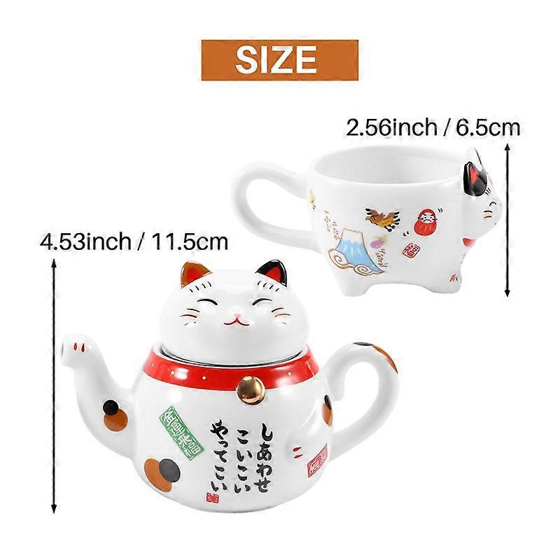 2 Pcs Cute Japanese Lucky Porcelain Tea Set Ceramic Tea Cup Pot with Strainer Lovely Teapot Mug