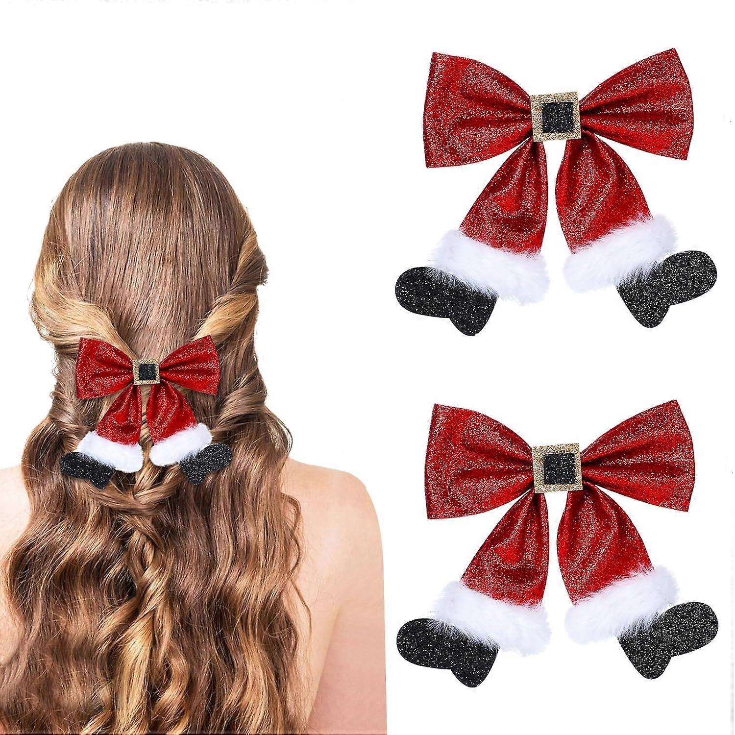 2 Pcs Christmas Hair Clips, Glitter Christmas Hair Bows Cute Bows Barrettes Red Bows Hairpins Christmas Hair Accessories for Girls Women Cos