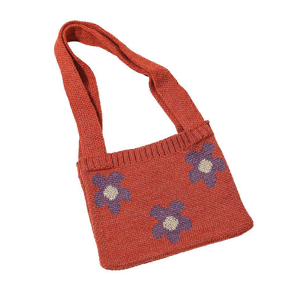Children Shoulder Bag 2Pcs Lightweight Knitted Flower Handbag Ideal For Beach And Party Events In Bright Orange