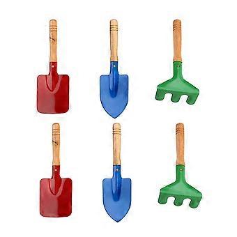 2 Set/6 Pcs Children Garden Tool Iron Shovel Trowel Rake Colored Printed Hand Tools with Wooden Handle for Kids Child Girl