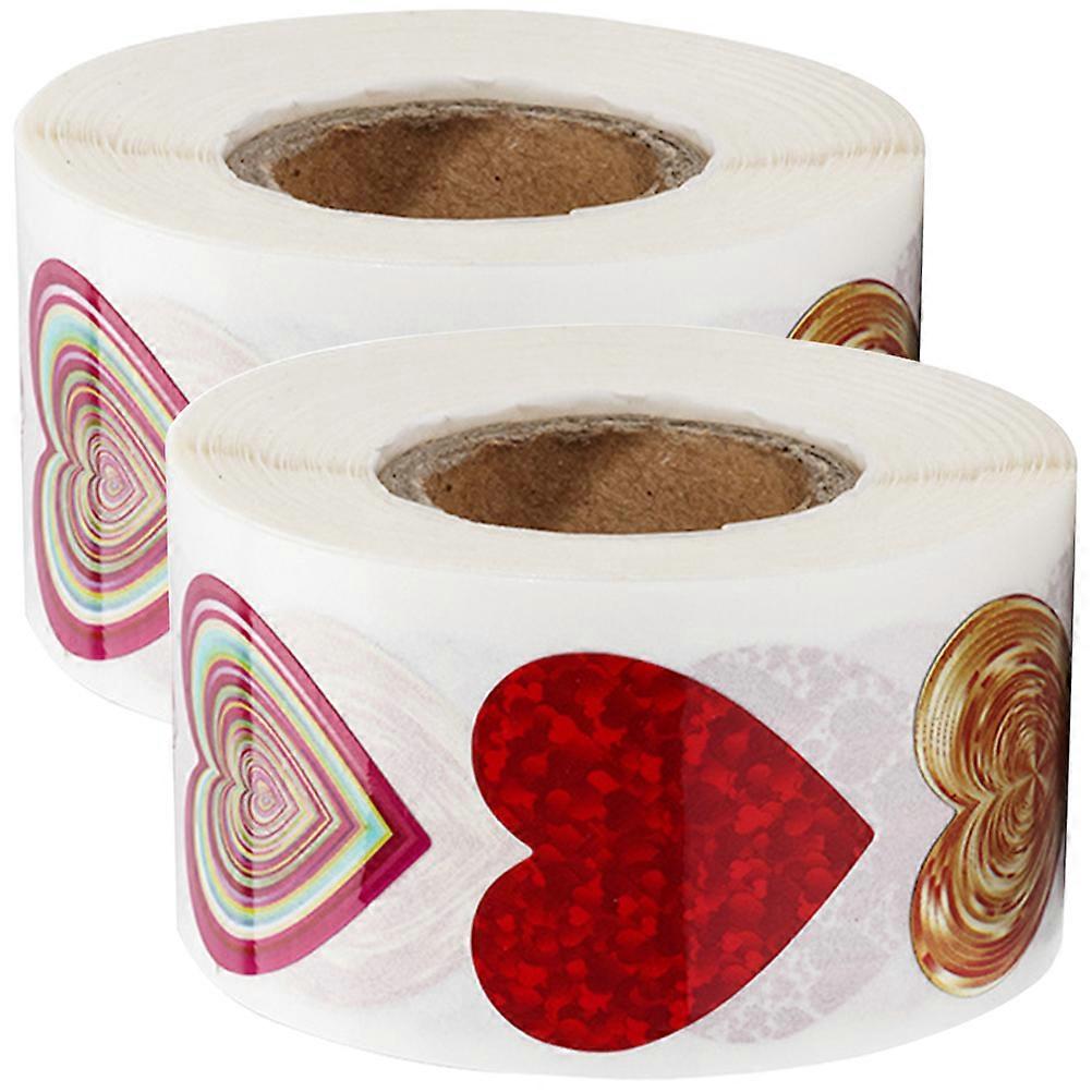 2 Rolls of Heart-shape Stickers Valentine's Day Gift Stickers Multi-functional Sealing Stickers