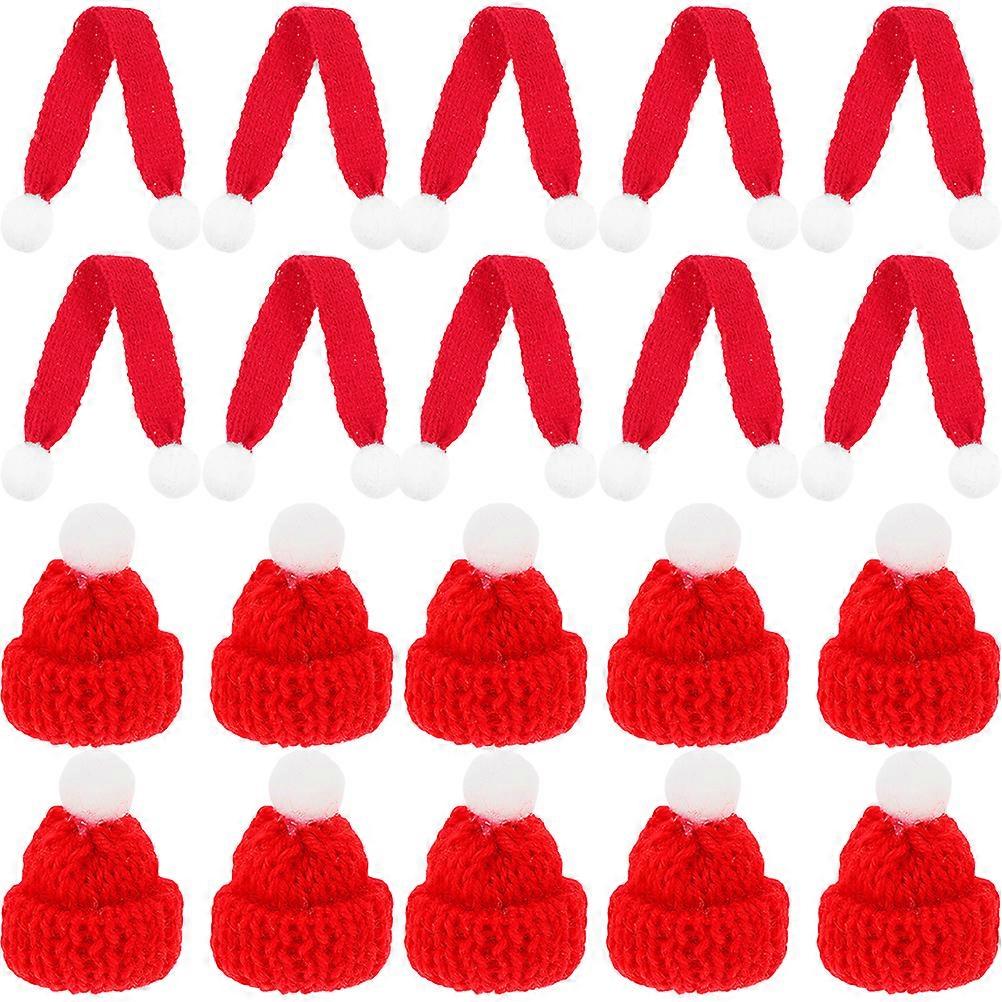 20 Pcs Santa Beanie Hat Mini Santa Hats Mini Santa Hat Scarf Christmas Cup Cover Tiny Santa Hat