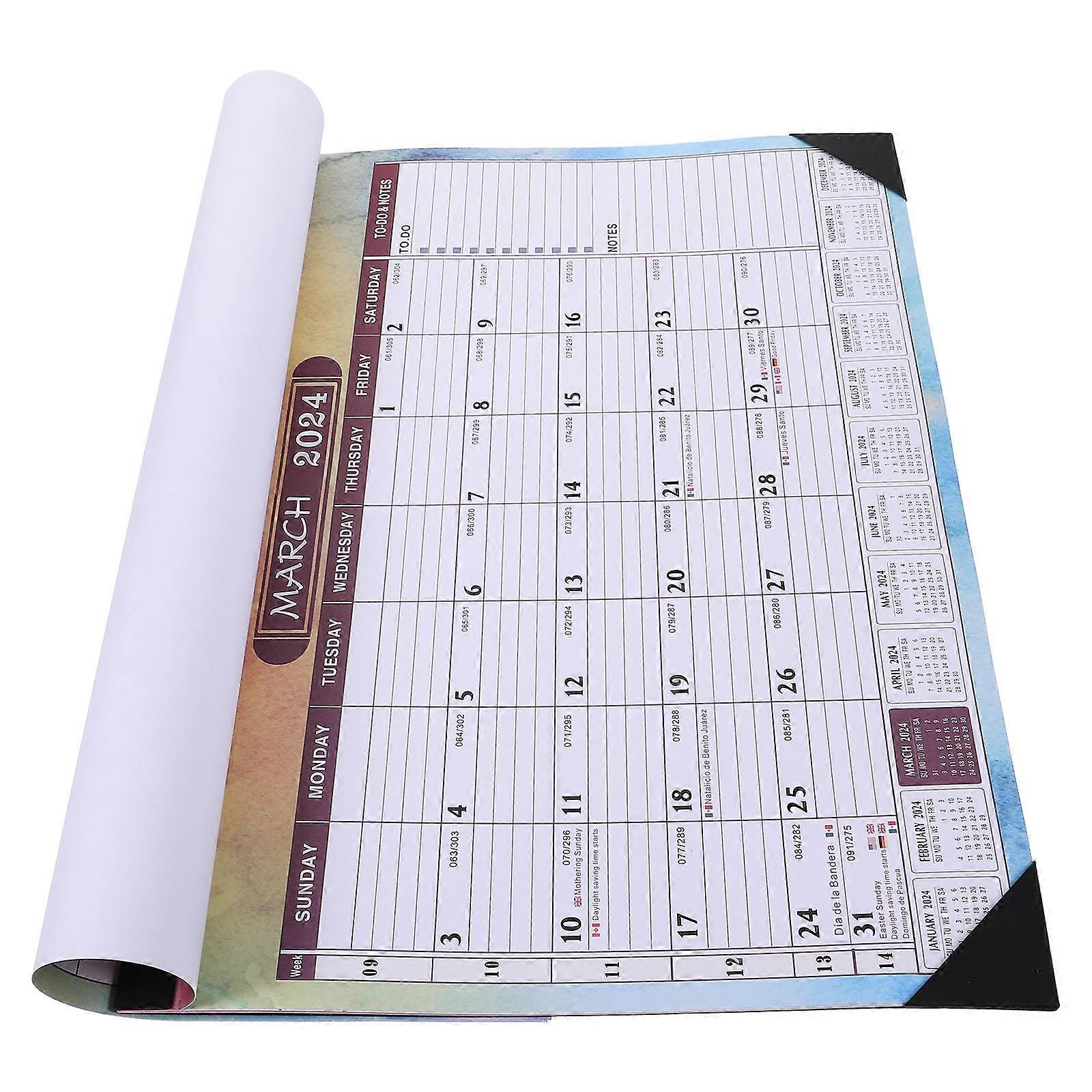 2024 Office Calendar Paper Monthly Noting Calendar for Home 4Pcs