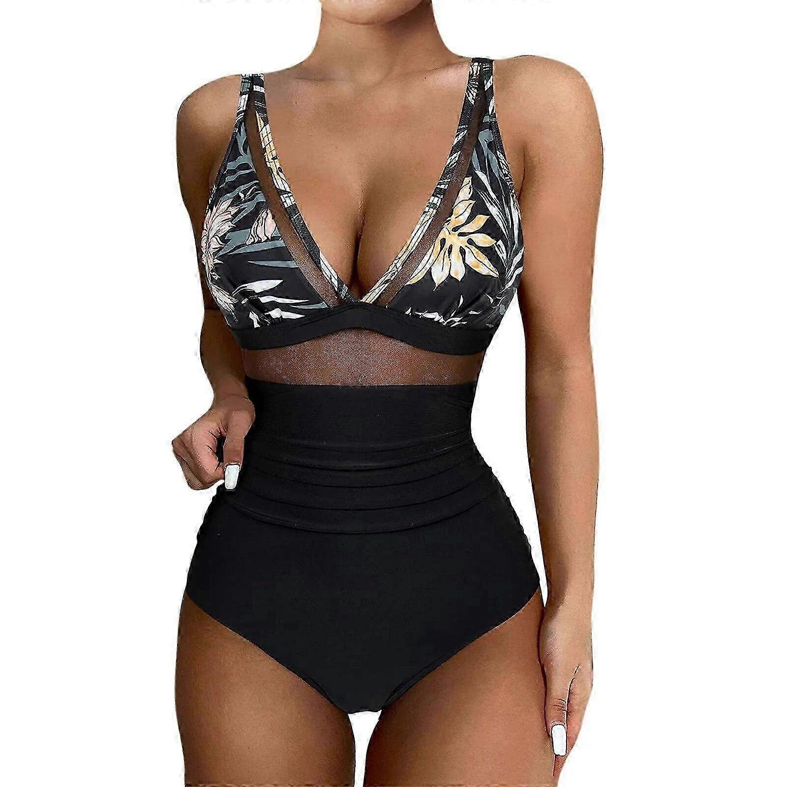 2024 New Sexy One Piece Mesh Patchwork Swimsuit for Women - Deep V-Neck Push Up Monokini Bathing Suit for Beach Wear