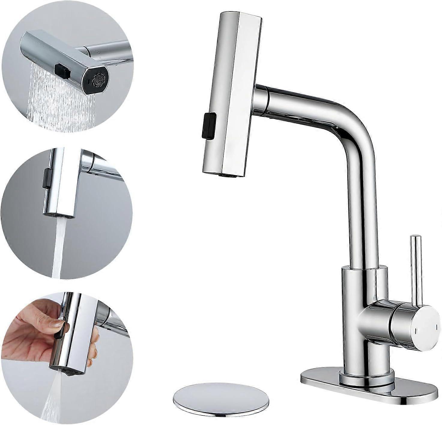 2025 Latest Model Waterfall Bathroom Faucet with 3 Mode Pull Out Rotary Switch