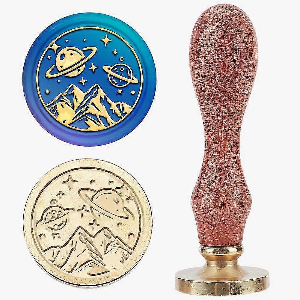 2025 Universe Space Planet Wax Seal Stamp 25mm Mountain Star Galaxy Sealing Wax Stamps Brass Removable Heads Wood Handle for Gift Wrapping Envelopes C